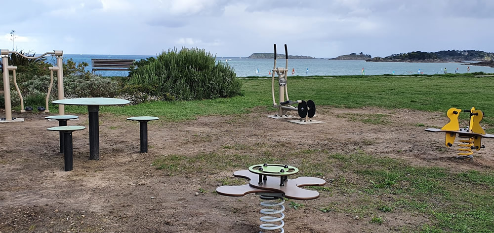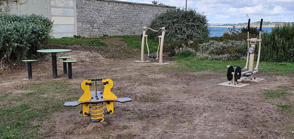 Plusieurs agrès de fitness sont disponibles. Un espace de rencontres intergénérationnel pour la pratique pour se maintenir en forme !