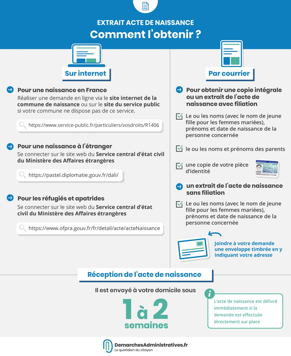 Acte de naissance : Demande de copie intégrale ou d'extrait